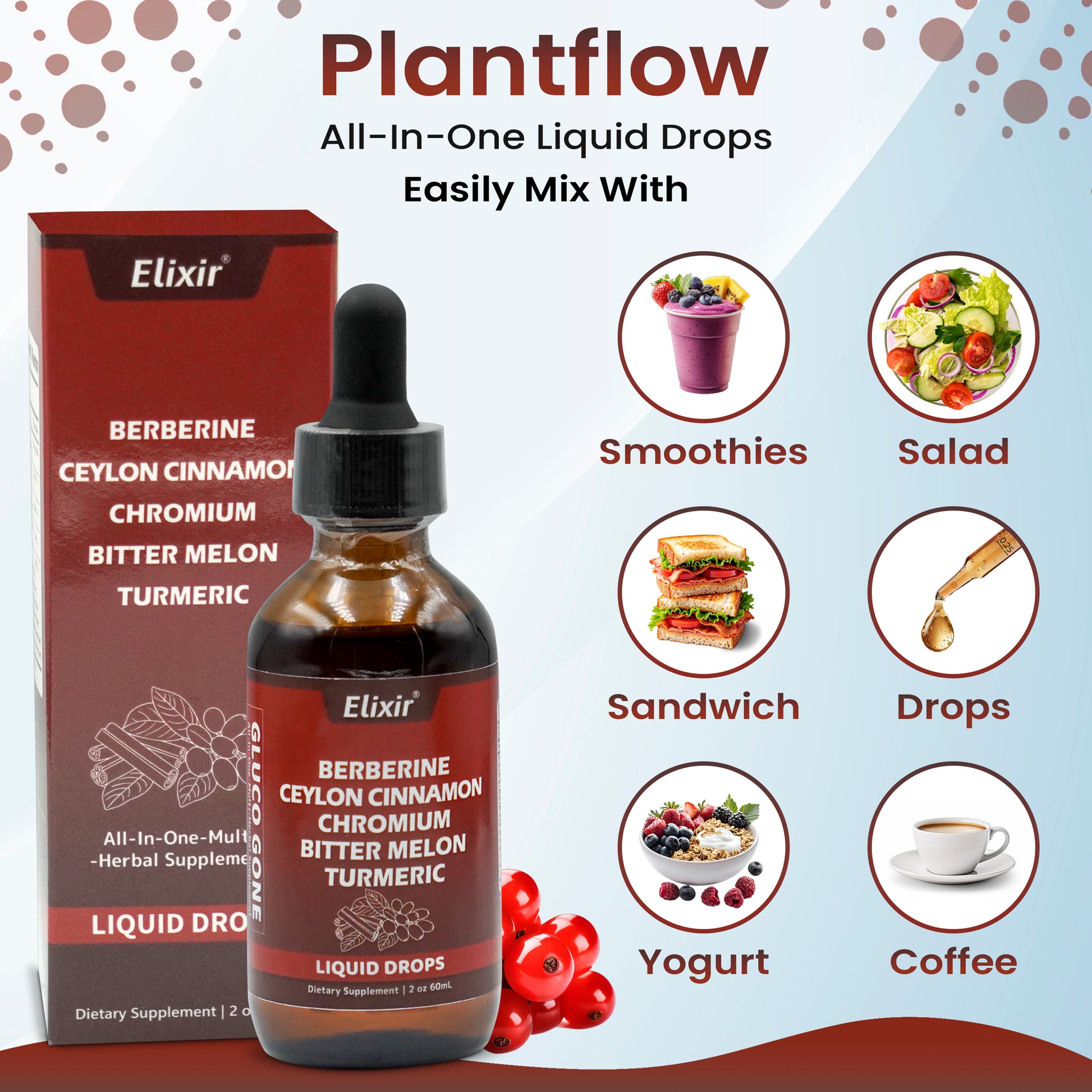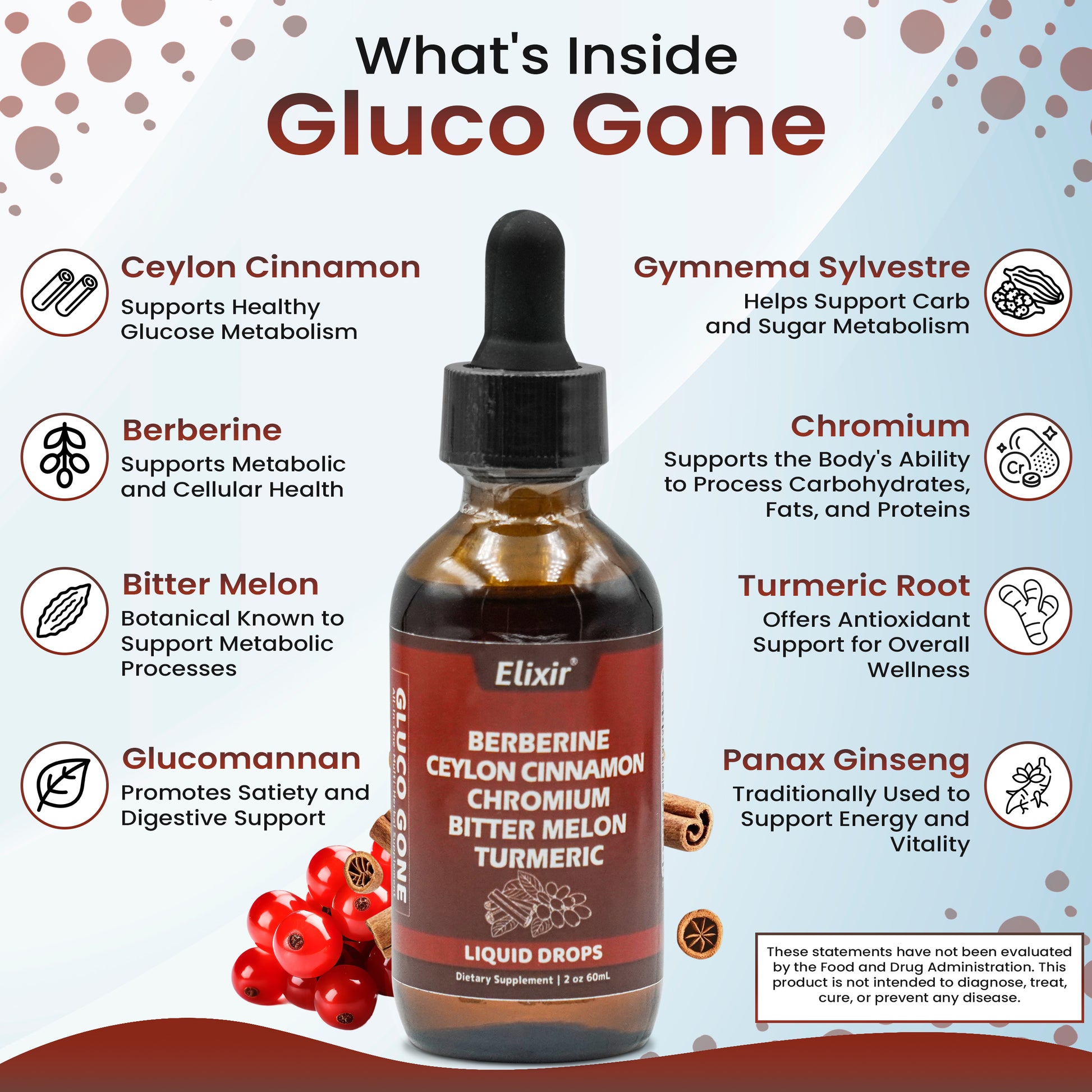 It’s a liquid supplement formulated with 10+ natural ingredients like Berberine, Ceylon Cinnamon, Bitter Melon, and more — designed to support blood sugar balance, digestion, inflammation, energy, and immunity.